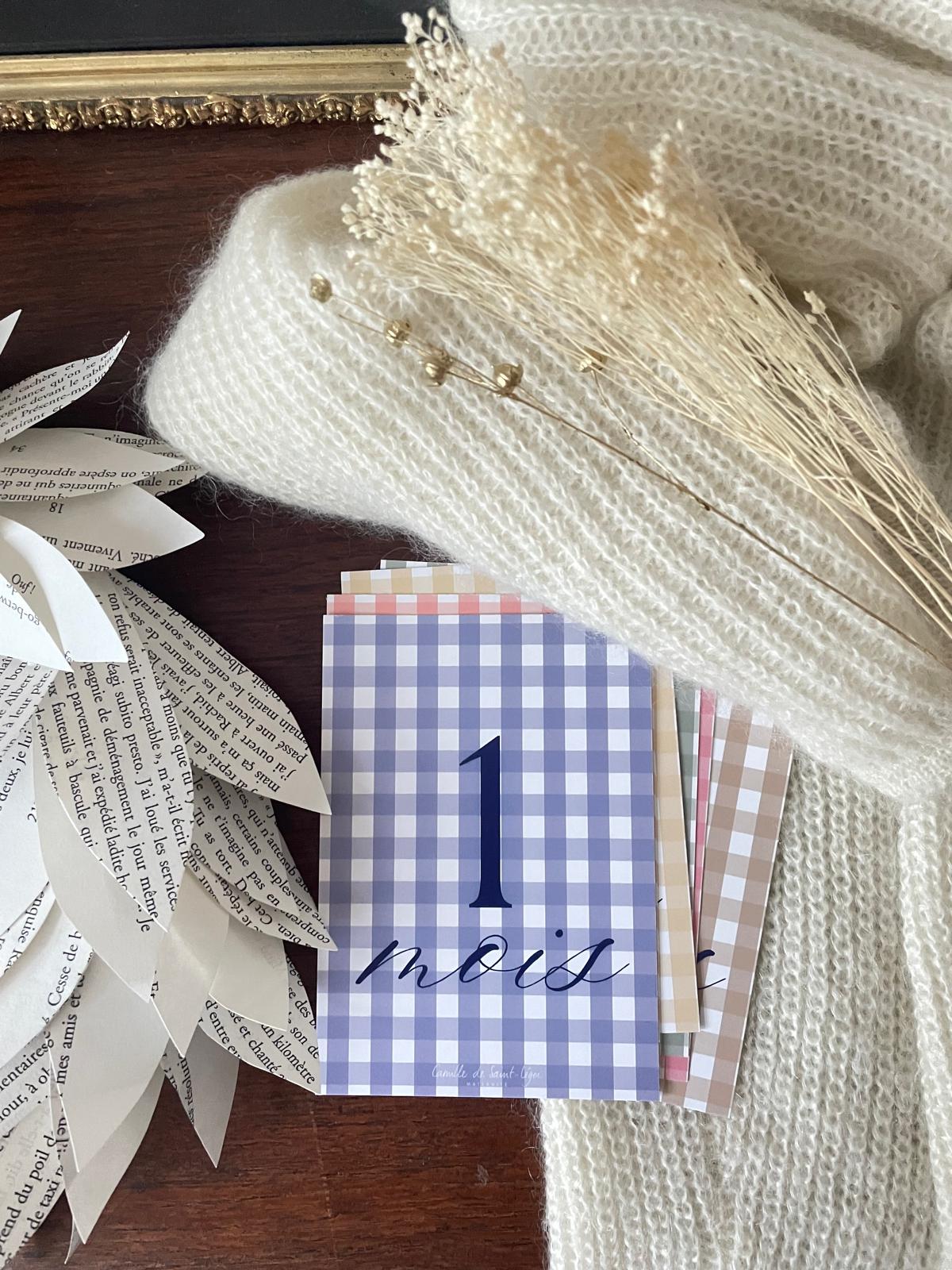 Mit diesen kleinen Karten können Sie im Laufe der Monate schöne Fotos von Ihrer Schwangerschaft und dann vom ersten Lebensjahr Ihres Babys machen.