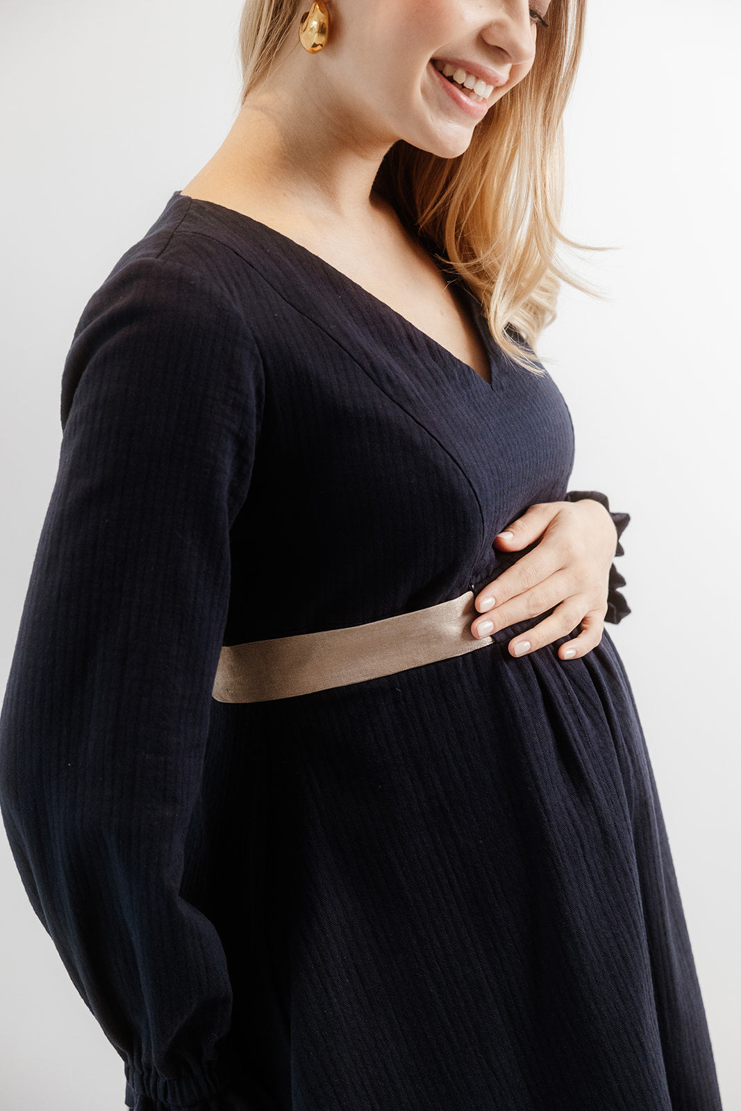 Zusammensetzung des goldenen Gürtels ohne Pailletten: 60 % Polyester – 40 % Viskose / Zusammensetzung des goldenen Gürtels mit Pailletten: 100 % Polyester – Pailletten 100 % PET