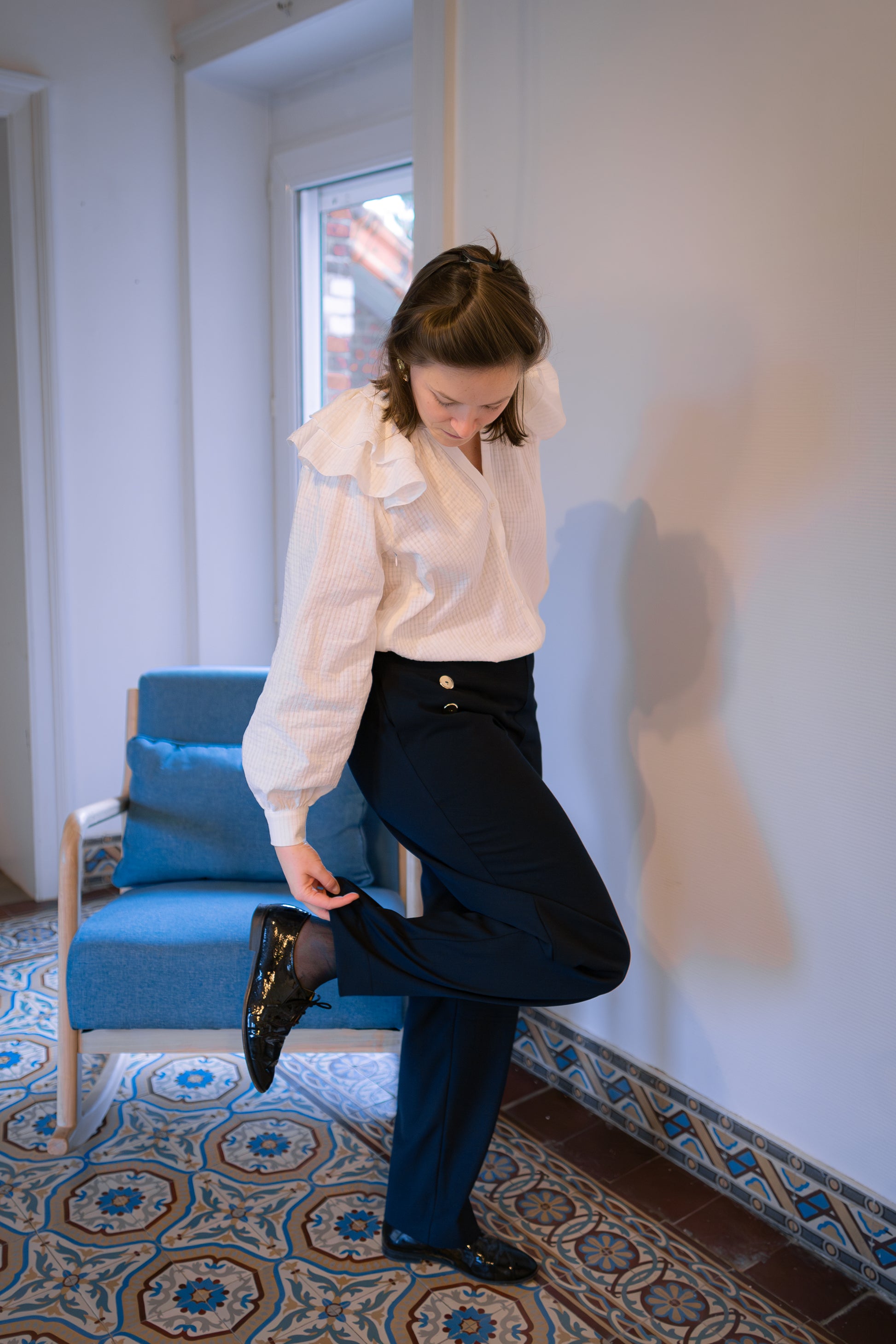 Hosen für alle Gelegenheiten! Kombinieren Sie es mit einem Matrosenoberteil und Sneakers für einen eleganten Casual-Look. Werten Sie Ihre Veranstaltungen mit einem Paar Pumps und einem strukturierten Mantel auf. Besonders gut gefällt es uns mit unserer weißen oder karierten Batignolles-Bluse !