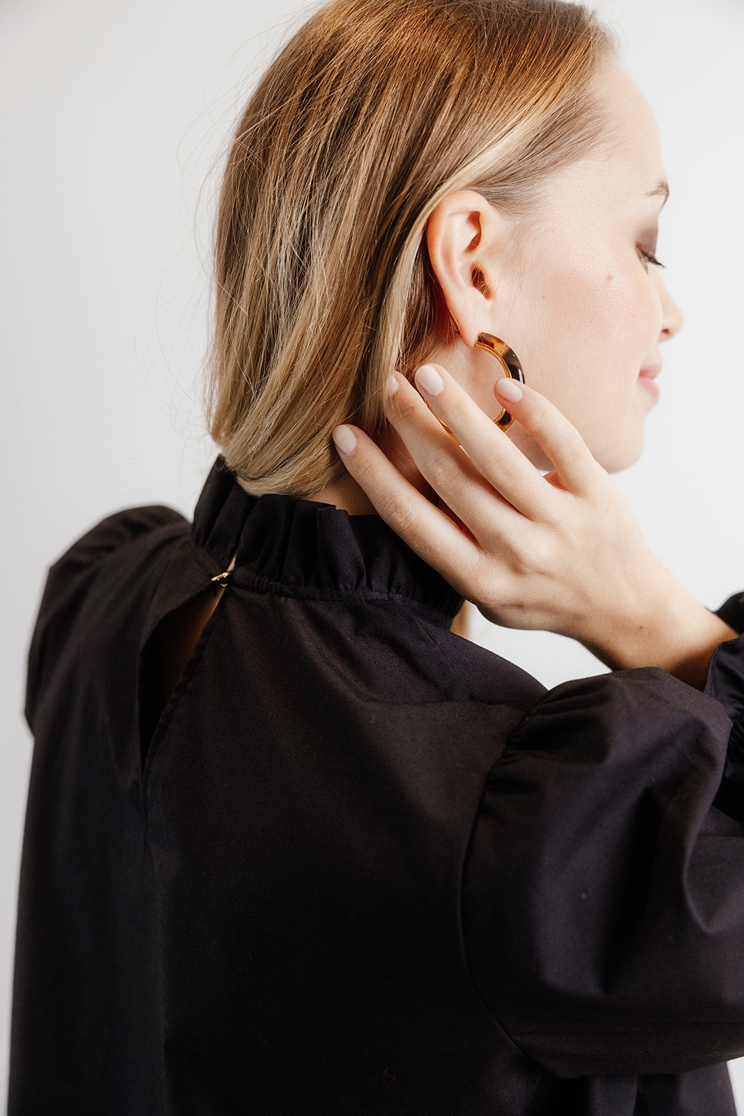 Madrague dress in French jacquard. Its belted empire waist is perfect for slimming and slimming your figure. Its puffed sleeves give it a touch of originality for your beautiful events.
